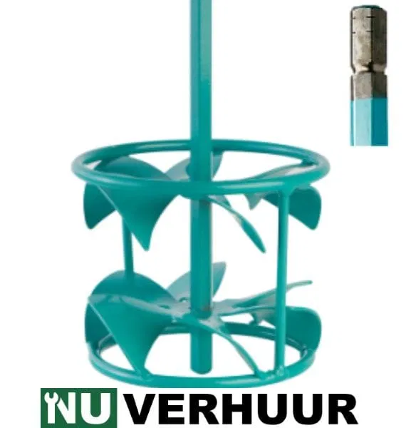 Verhuurd met M14 gipsmenggarde en collomix DLX 152 egaline mengspiraal inclusief adapter.